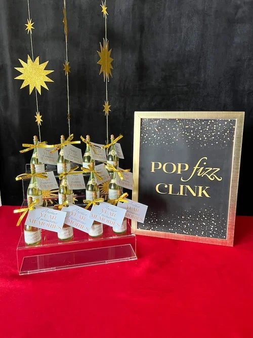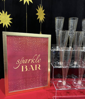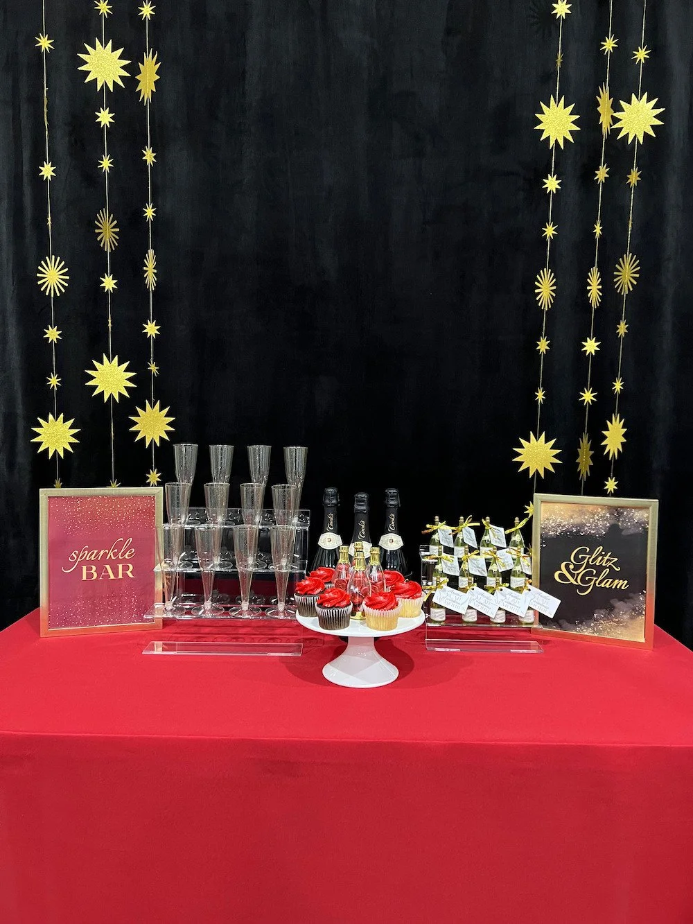 Bubbly Bar – Champagne flutes, sparkling juice, and elevated garnishes