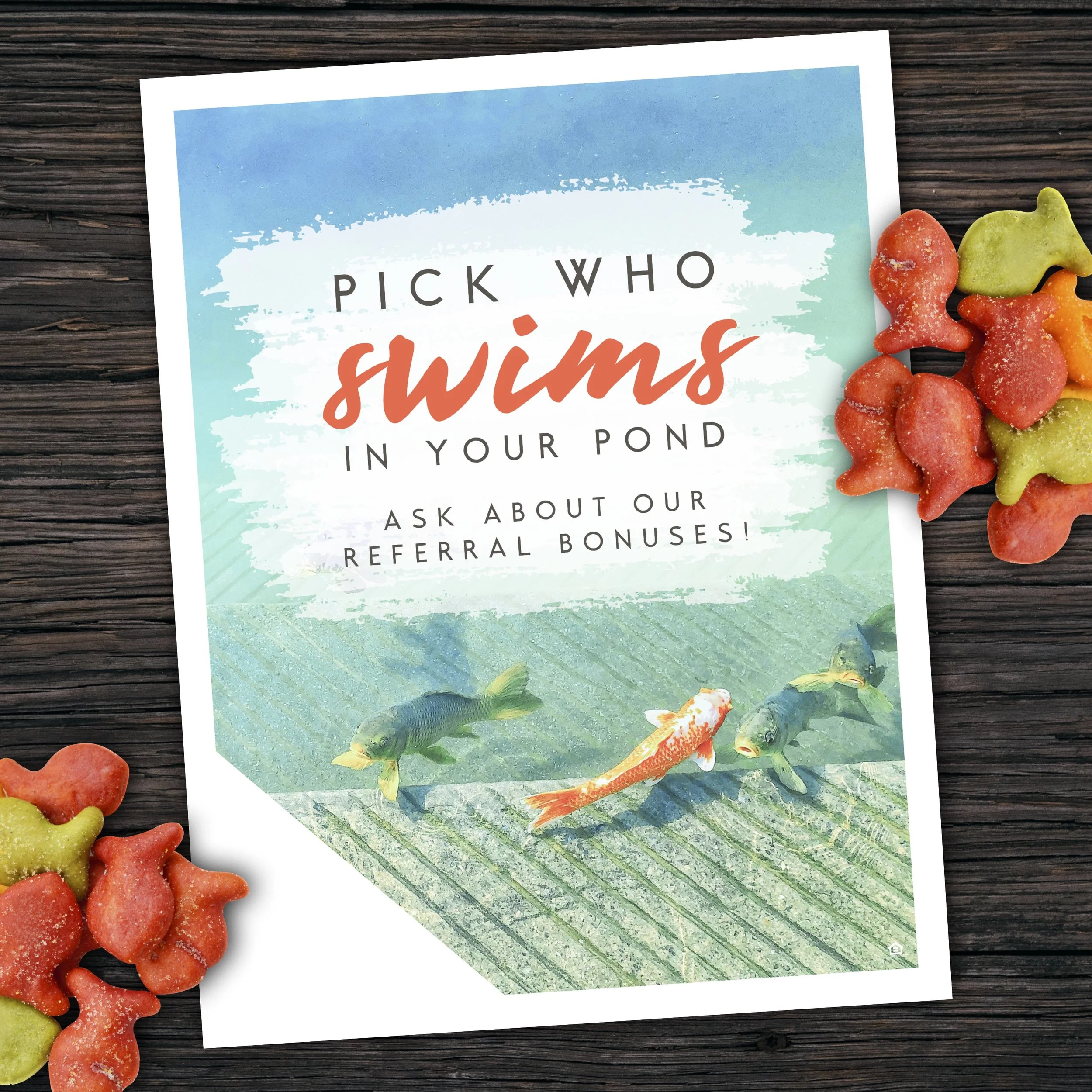 "Pick Who Swims in Your Pond" is a fun, summery referral campaign that lets residents help shape their community—by inviting friends to live nearby and earning bonuses for it! The playful “pond” theme adds a lighthearted touch, especially when paired with a treat like Goldfish crackers as a reminder to refer.