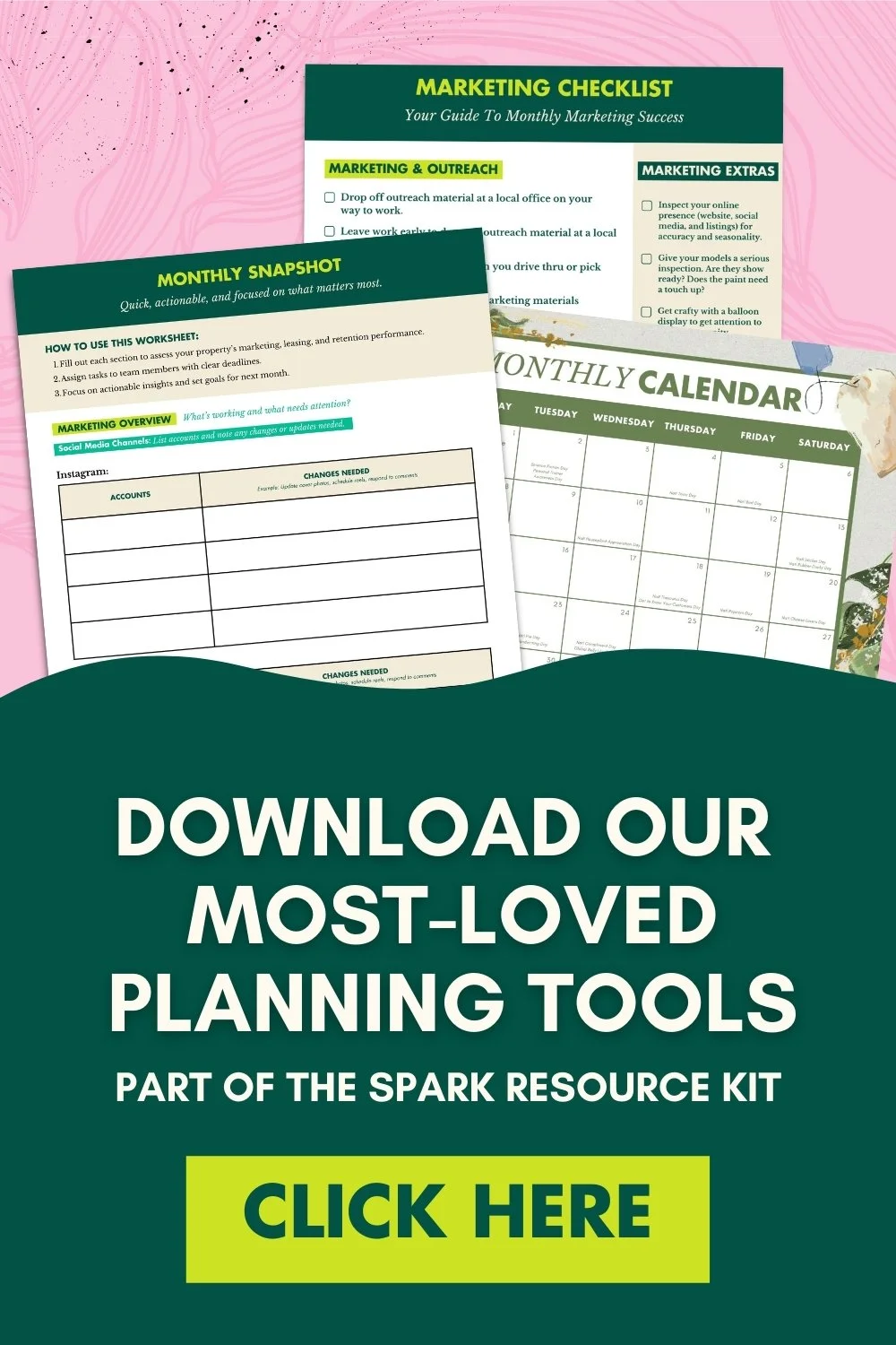 Use your Sprout Marketing Checklist to make sure you cover all the essentials for the month. This includes outreach, renewals, referrals, events, resident notices, and social media.