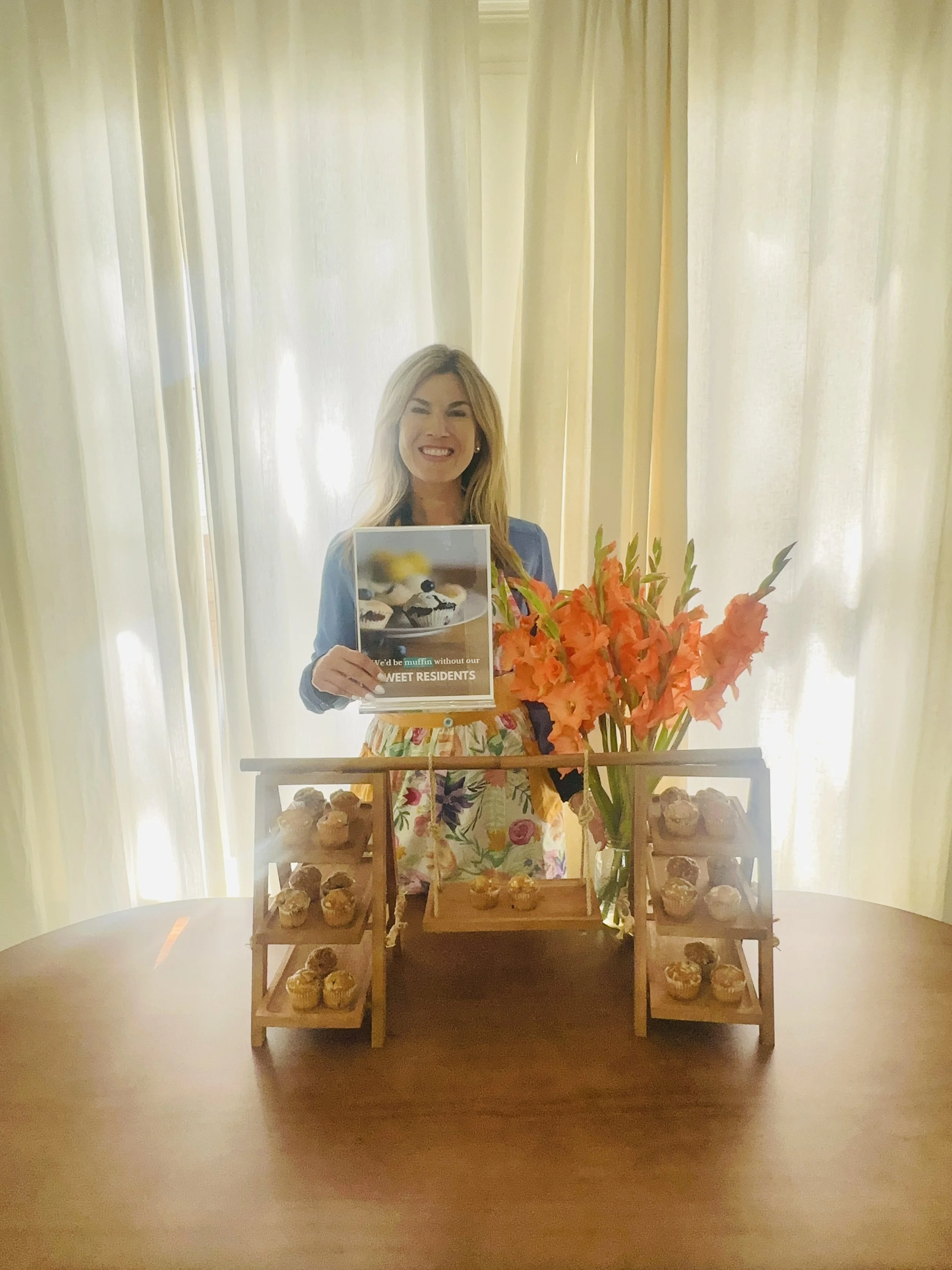 (3) If time allows, set up coffee alongside the muffins and make it a sit-down moment with residents. It’s a simple way to create a genuine community connection.