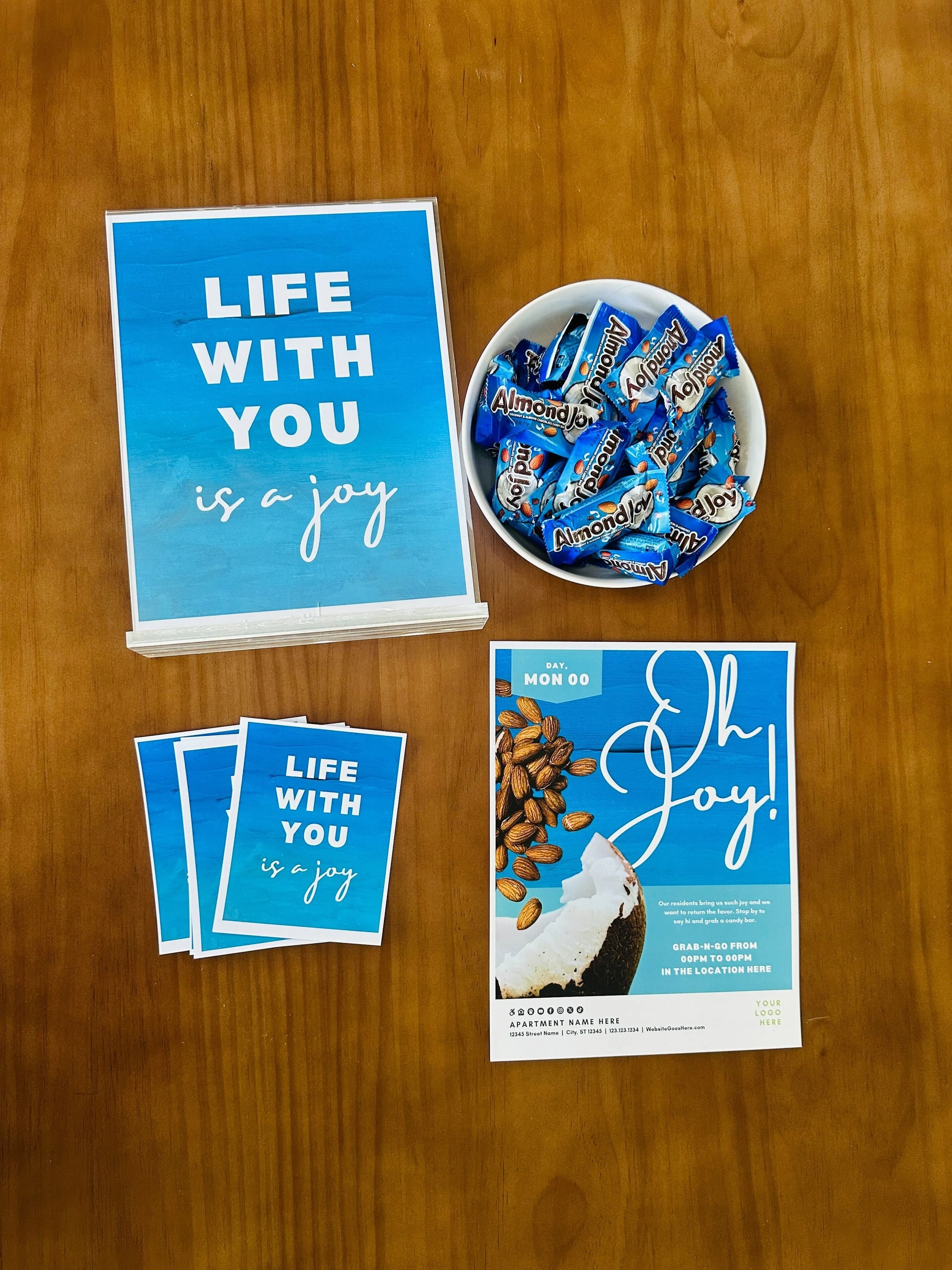 Some of the best resident appreciation ideas are the easiest ones. For World Chocolate Day—or really, any day—a grab-and-go chocolate station is a low-effort, high-smile setup. Set out a jar of mini Almond Joys with a themed sign or flyer, or take it one step further and leave a sweet treat behind after a service request. It’s proof that even tiny gestures can leave a lasting impression.