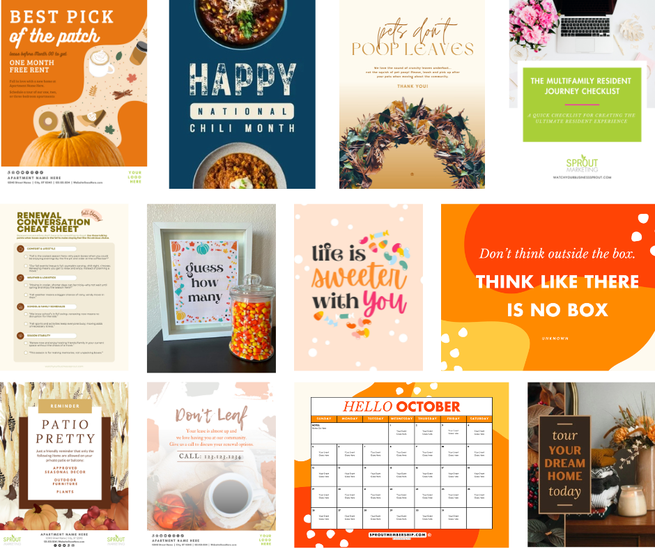 (Psst - here’s a peak at October’s marketing and renewal flyers… both only cost you $0.28. How? Because Spark is a $7 Monthly Resource Kit that’s packed with resources that we know property managers desperately need.)