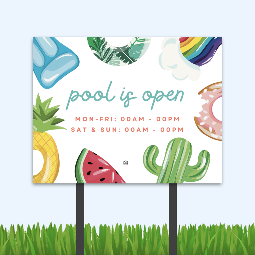 It’s summertime! That means time for swimming at your community pool and you need the notices to get the word out. Use this bandit sign to tell your community that the pool is open and what the apartment pool hours are.